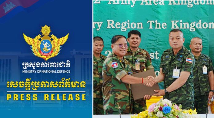 ក្រសួងការពារជាតិនៃព្រះរាជាណាចក្រកម្ពុជាតាមរយៈបណ្ដាញសង្គមផ្លូវការ រសៀលថ្ងៃទី២៧ ខែសីហា ឆ្នាំ២០២៥ បានជម្រាបជូនដល់សាធារណជន អ្នកសារព័ត៌មានជាតិ និងអន្តរជាតិ