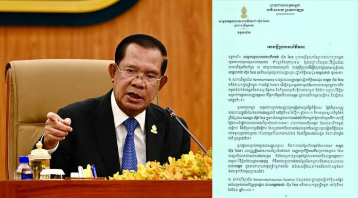 សេចក្ដីប្រកាសព័ត៌មានរបស់ ខុទ្ទកាល័យ សម្ដេចអគ្គមហាសេនាបតីតេជោ ហ៊ុន សែន ប្រធានព្រឹទ្ធសភានៃព្រះរាជាណាចក្រកម្ពុជា