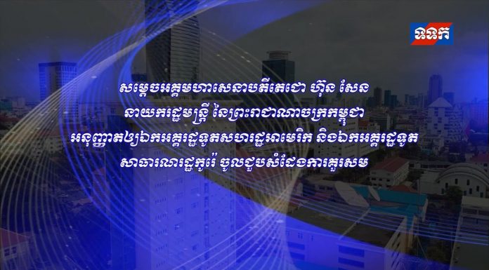 សម្តេចអគ្គមហាសេនាបតីតេជោ ហ៊ុន សែន អនុញ្ញាតឱ្យឯកអគ្គរដ្ឋទូតសហរដ្ឋអាមេរិក និងឯកអគ្គរដ្ឋទូតសាធារណរដ្ឋកូរ៉េ ចូលជួបសំដែងការគួរសម
