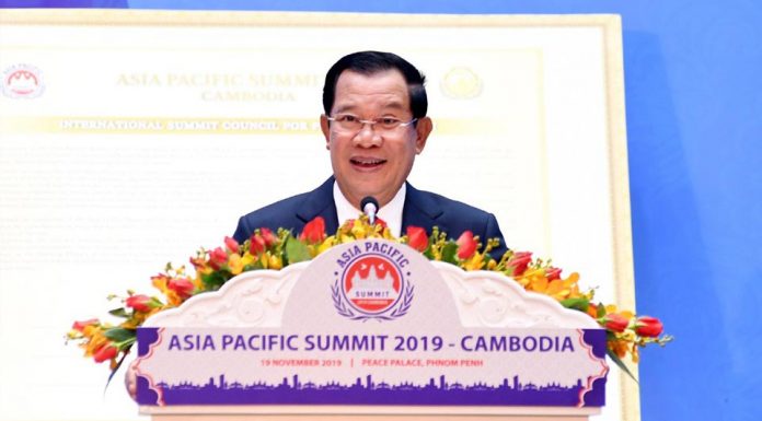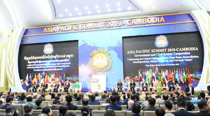 សម្តេចអគ្គមហាសេនាបតីតេជោ ហ៊ុន សែន នាយករដ្ឋមន្រ្តីនៃព្រះរាជាណាចក្រកម្ពុជា អញ្ជើញជាអធិបតី បើកកិច្ចប្រជុំ កំពូលអាស៊ីប៉ាស៊ីហ្វិក លើកទី២ ដែលកម្ពុជាធ្វើជាម្ចាស់ផ្ទះ ប្រារព្ធធ្វើឡើងនៅរាជធានីភ្នំពេញ នាព្រឹកថ្ងៃទី១៩ ខែវិច្ឆិកា ឆ្នាំ២០១៩