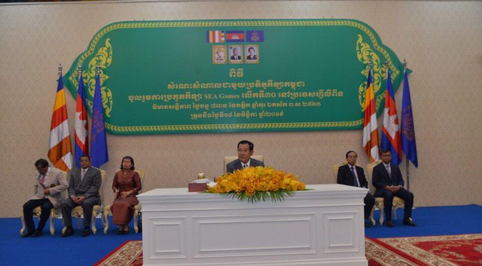 សម្តេចអគ្គមហាសេនាបតីតេជោ ហ៊ុន សែន នាយករដ្ឋមន្រ្តី នៃព្រះរាជាណាចក្រកម្ពុជា ក្នុងពិធីសំណេះសំណាលជាមួយប្រតិភូកីឡាកម្ពុជា ទៅចូលរួមកីឡា SEA GAMES លើកទី៣០ នៅប្រទេសហ្វីលីពីន