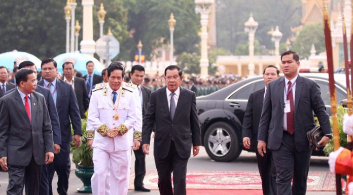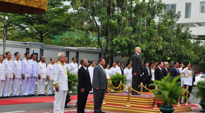 ឯកឧត្តមកិតិ្តនីតិកោសលបណ្ឌិត ប៊ិន ឈិន ឧបនាយករដ្ឋមន្រ្តីប្រចាំការ រដ្ឋមន្រ្តីទទួលបន្ទុកទីស្តីការគណៈរដ្ឋមន្រ្តី និងមន្ត្រីរាជការក្រោមឱវាទ បានអញ្ជើញដង្ហែព្រះករុណាព្រះបាទសម្ដេចព្រះបរមនាថ នរោត្ដម សីហមុនី ព្រះមហាក្សត្រនៃព្រះរាជាណាចក្រកម្ពុជា