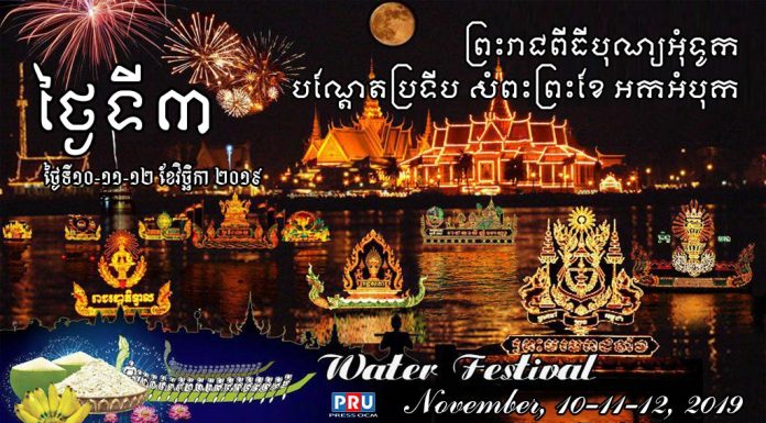ព្រះរាជពិធីបុណ្យអុំទូក បណ្តែតប្រទីប និងសំពះព្រះខែ អកអំបុក ចាប់កូនខ្លែង កាត់ព្រ័ត្រ ថ្ងៃទី៣ ក្រោមព្រះរាជធិបតីភាព ព្រះករុណា ព្រះបាទសម្តេចព្រះបរមនាថ នរោត្តម សីហមុនី ព្រះមហាក្សត្រ នៃព្រះរាជាណាចក្រកម្ពុជា