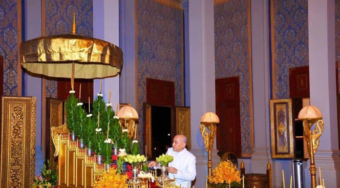 ព្រះករុណា ព្រះបាទសម្ដេចព្រះបរមនាថ នរោត្តម សីហមុនី ព្រះមហាក្សត្រ នៃព្រះរាជាណាចក្រកម្ពុជា ស្ដេចយាងជា ព្រះរាជាធិបតី ព្រះរាជពិធីសំពះព្រះខែ និងអកអំបុក នៅក្នុងព្រះបរមរាជវាំង រាជធានីភ្នំពេញ នារាត្រីថ្ងៃទី១១ ខែវិច្ឆិកា ឆ្នាំ២០១៩ ដែលជាថ្ងៃទី២