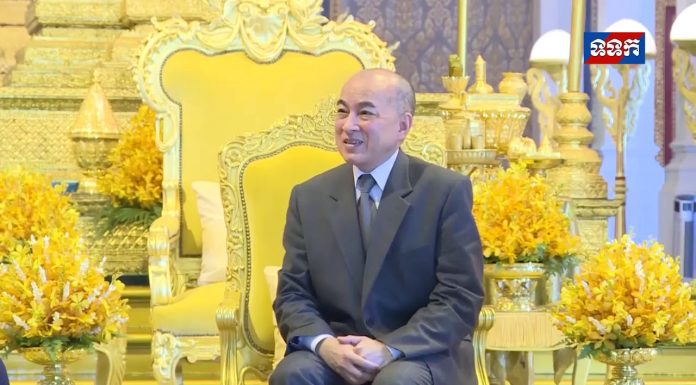 ព្រះករុណា ព្រះបាទ សម្ដេចព្រះបរមនាថ នរោត្ដម សីហមុនី ព្រះមហាក្សត្រ នៃព្រះរាជាណាចក្រកម្ពុជា ព្រះអង្គបានសព្វព្រះរាជហឬទ័យ ស្ដេចយាងជាព្រះរាជាធិបតីភាពដ៏ខ្ពង់ខ្ពស់ ក្នុងព្រះរាជពិធីប្រទានភ្លើងជ័យ ក្នុងឱកាសទិវាបុណ្យឯករាជ្យជាតិ ៩ វិច្ឆិកា