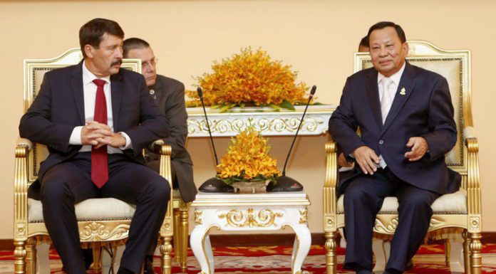 សម្តេចអគ្គមហាពញាចក្រី ហេង សំរិន ប្រធានរដ្ឋសភា នៃព្រះរាជាណាចក្រកម្ពុជា ទទួលជួបសវនាការជាមួយឯកឧត្តម យ៉ាណូស អាឌ័រ (János Áder) ប្រធានាធិបតី នៃប្រទេសហុងគ្រី នៅរាជធានីភ្នំពេញ នារសៀលថ្ងៃទី២៨ ខែតុលា ឆ្នាំ២០១៩