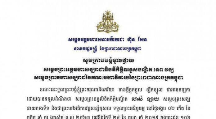 សម្តេចតេជោ និងសម្តេចកិត្តិព្រឹទ្ធបណ្ឌិត សម្តែងសមានទុក្ខមហាក្រៀមក្រំ ចំពោះការទទួលព្រះអនិច្ចធម្ម របស់សម្តេចព្រះធម្មលិខិត លាស់ ឡាយ សម្តេចព្រះសង្ឃនាយករងទី១ នៃព្រះរាជាណាចក្រកម្ពុជា