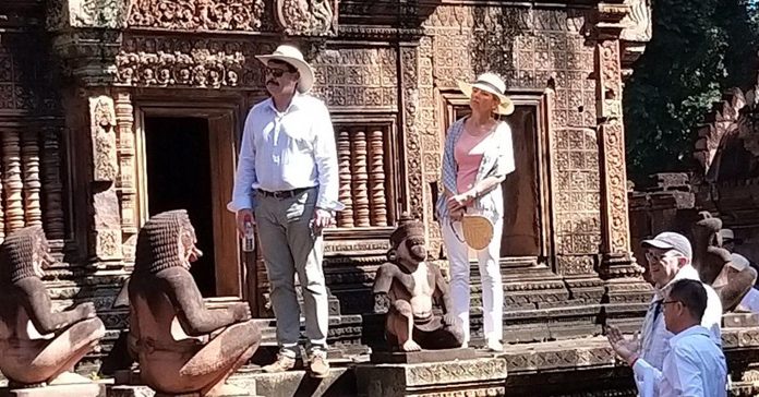 ឯកឧត្តម យ៉ាណូស អាឌ័រ (János Áder) ប្រធានាធិបតី នៃសាធារណរដ្ឋហុងគ្រី និងលោកជំទាវ អមដំណើរដោយ សម្តេចចៅហ្វាវាំង គង់ សំអុល ឧបនាយករដ្ឋមន្ត្រី រដ្ឋមន្ត្រីក្រសួងព្រះបរមរាជវាំង និងឯកឧត្តម ថោង ខុន រដ្ឋមន្រ្តីក្រសួងទេសចរណ៍