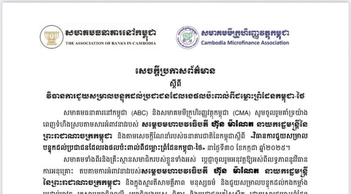 សមាគមធនាគារនៅកម្ពុជា ប្រកាសគាំ...