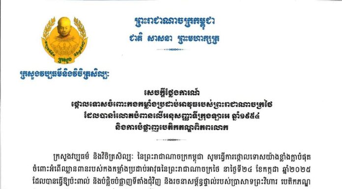 ក្រសួងវប្បធម៌ ថ្កោលទោសចំពោះកងក...