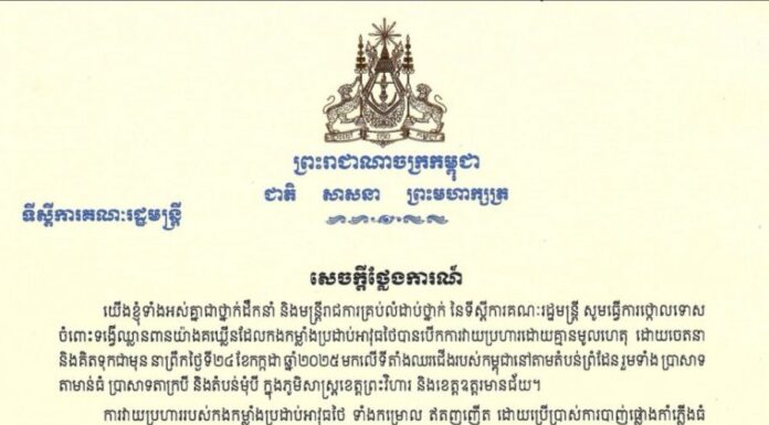 ទីស្តីការគណៈរដ្ឋមន្ត្រី ប្រកាស...