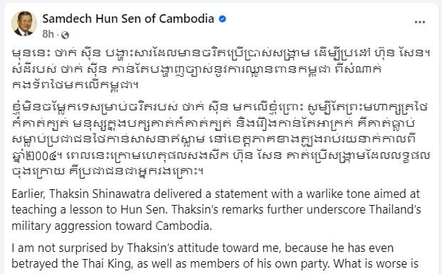 សម្តេចមហាបវរធិបតី ហ៊ុន ម៉ាណែត នាយករដ្ឋមន្ត្រី នៃព្រះរាជាណាចក្រកម្ពុជា៖ "ទោះបីជាពេលនេះមានការប្រយុទ្ធគ្នារវាងកងទ័ពកម្ពុជា និងកងទ័ពថៃនៅព្រំដែនក៏ដោយ